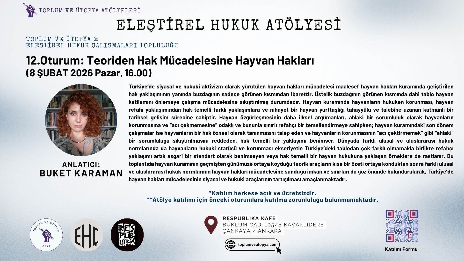 Eleştirel Hukuk Atölyesi’nin “İnsan Haklarının Sonunda; Marksizm ve Hak Mücadeleleri” başlıklı dokuzuncu oturumu, Ezgi Duman anlatıcılığında, 25 Ocak 2026 Pazar günü saat 16.00’da ResPublika Kafe’nin ev sahipliğinde gerçekleştirilecektir. Atölye içeriği şu şekildedir:…