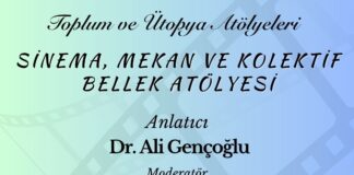 Toplum ve Ütopya tarafından düzenlenen “Sinema, Mekân ve Kolektif Bellek Atölyesi”, Dr. Ali Gençoğlu’nun anlatıcılığında ve İlknur Burcu Keser’in moderatörlüğünde, 4 Kasım...