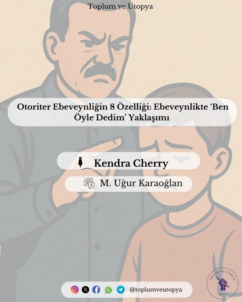 Otoriter Ebeveynliğin 8 Özelliği: Ebeveynlikte ‘Ben Öyle Dedim’ Yaklaşımı / Kendra Cherry (Çevirmen: M. Uğur Karaoğlan)Toplum ve Ütopya21 Nis, 10:44 pm